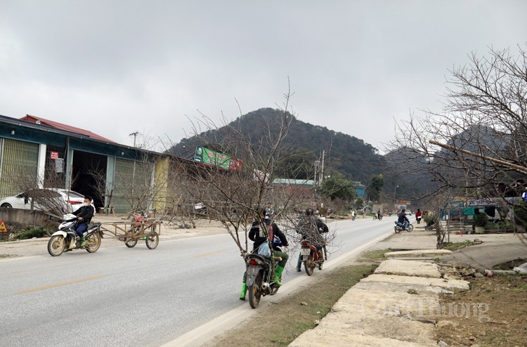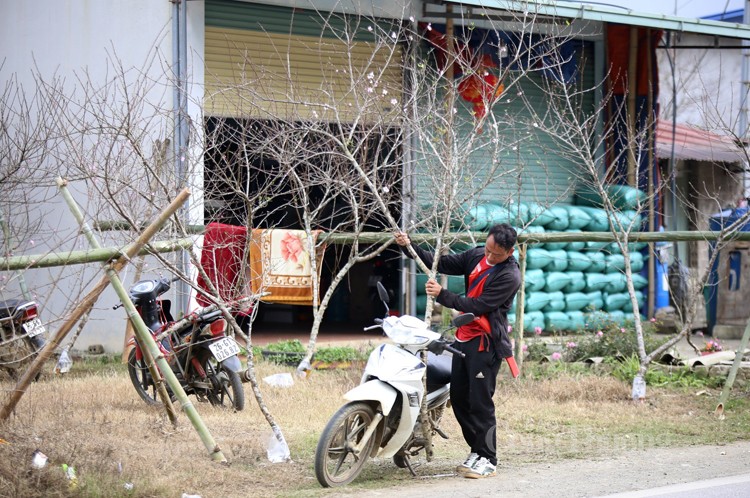 | Cành đào, cành mận xuống núi và được bày bán dọc đường |