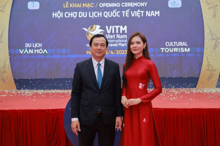| Tổng Cục trưởng Tổng Cục Du lịch Việt Nam Nguyễn Trùng Khánh cùng Hoa hậu Du lịch Việt Nam 2022 Lương Kỳ Duyên tại Hội chợ Du lịch Việt Nam 2023 |