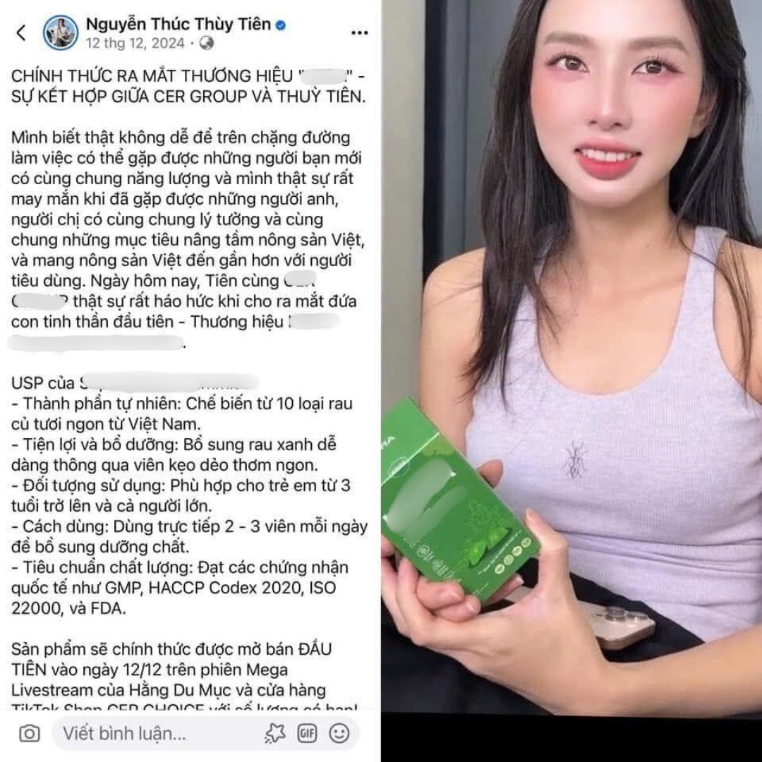 | Bài viết ra mắt thương hiệu kẹo rau củ ngày 12/12/2024 được đăng tải trên trang cá nhân, hiện đã được Thuỳ Tiên xoá hoặc ẩn đi. |