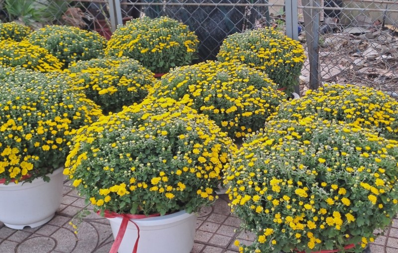 Chị Hiền (chủ vườn cây cảnh trên đường Phạm Văn Đồng) cho biết, cúc mâm xôi là loại hoa được ưu chuộng và bán chạy nhất trong dịp Tết Nguyên đán vì giá thành rẻ, hoa trưng được lâu. |