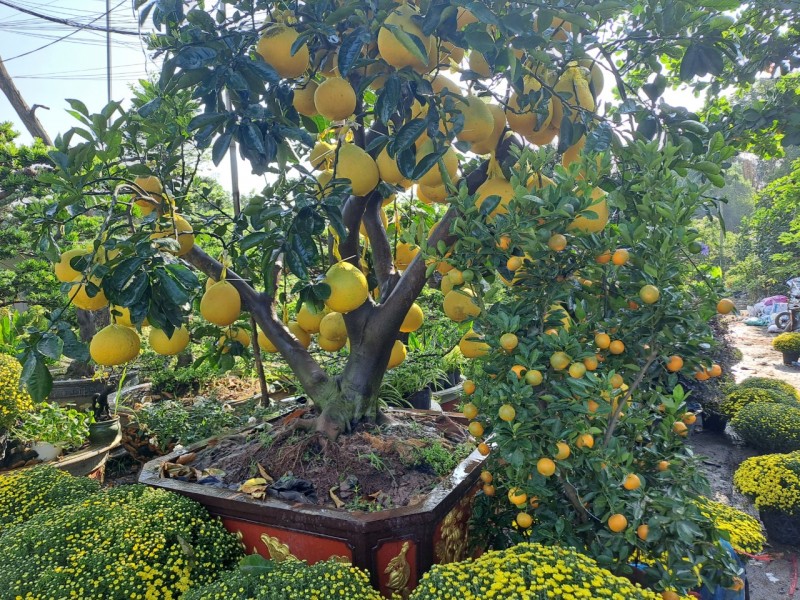 Anh Cường (chủ vườn cây cảnh ở TP Thủ Đức) cho biết, năm nay vườn nhập hơn 200 chậu bưởi diễn từ Hà Nội và 300 chậu quất từ ngoài Bắc vào bán. "Giá quất từ 300 - 500 nghìn đồng/chậu, còn bưởi có giá từ 1,5 triệu - 6 triệu đồng/chậu, tùy vào thế của cây mà bưởi sẽ có giá thành khác nhau", anh Cường cho hay. |