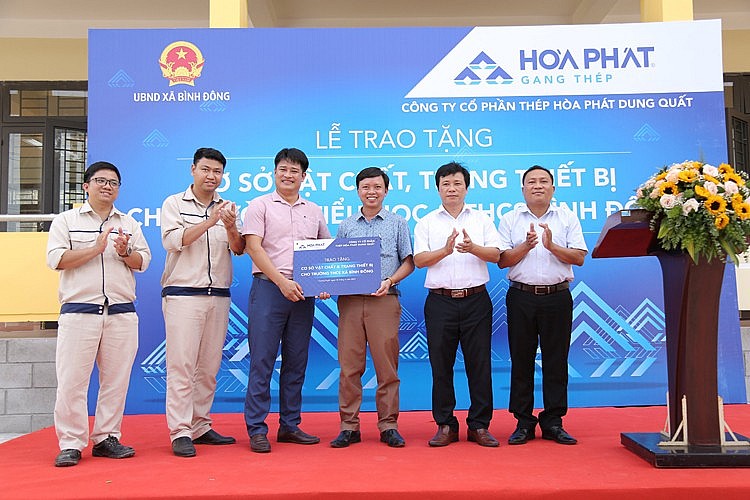 Ngày 10/6/2022, Công ty Thép Hòa Phát Dung Quất đã phối hợp cùng UBND hai xã Bình Đông và Bình Thuận, huyện Bình Sơn, tỉnh Quảng Ngãi tổ chức Lễ bàn giao công trình tài trợ trường Tiểu học & THCS Bình Đông, Trạm y tế và trường mầm non 18/3 xã Bình Thuận. Tổng giá trị Hòa Phát tài trợ cho các công trình này là hơn 5 tỷ đồng.