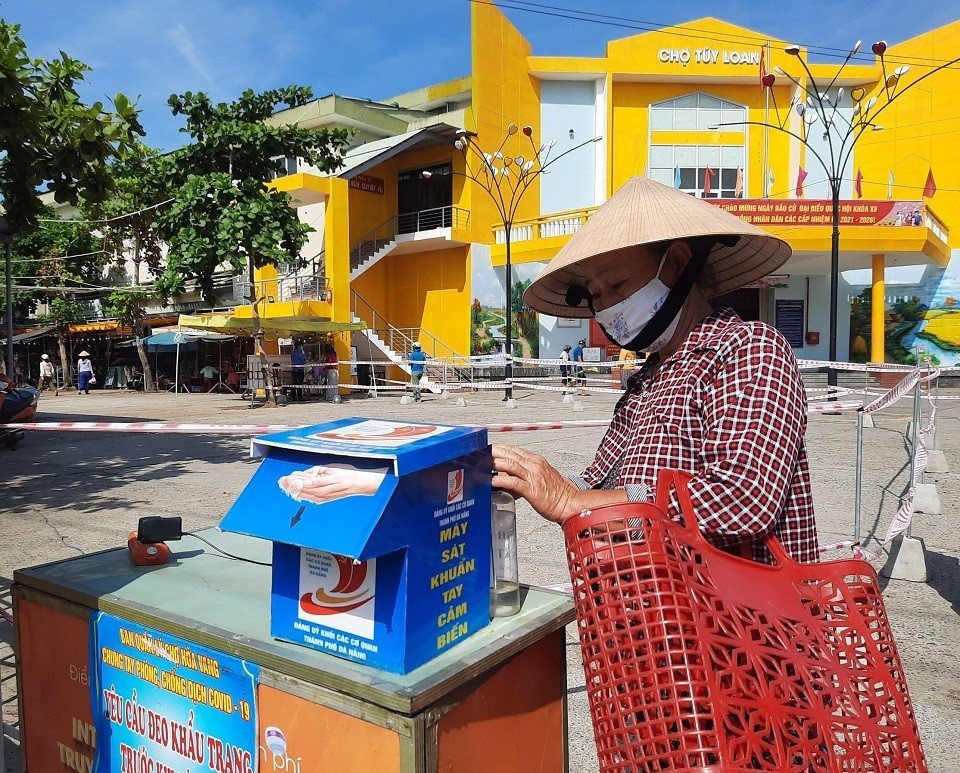 Theo ghi nhận của phóng viên Báo Công Thương về công tác phòng, chống dịch Covid-19 ở nhiều khu chợ tại huyện Hòa Vang, TP. Đà Nẵng. Đây là địa bàn ngoại ô rộng lớn với hàng chục chợ lớn nhỏ, quy tụ hàng ngàn tiểu thương buôn bán. Tại chợ Túy Loan, Ban quản lý các chợ huyện Hòa Vang đã triển khai căng dây phân luồng lối ra vào chợ giúp người dân nhận biết, thuận tiện đi lại. Tại các cửa ngõ ra vào chợ đều được bố trí bình sát khuẩn tự động. Trước khi vào chợ, người dân thực hiện sát khuẩn rồi xuất trình phiếu cho bảo vệ.