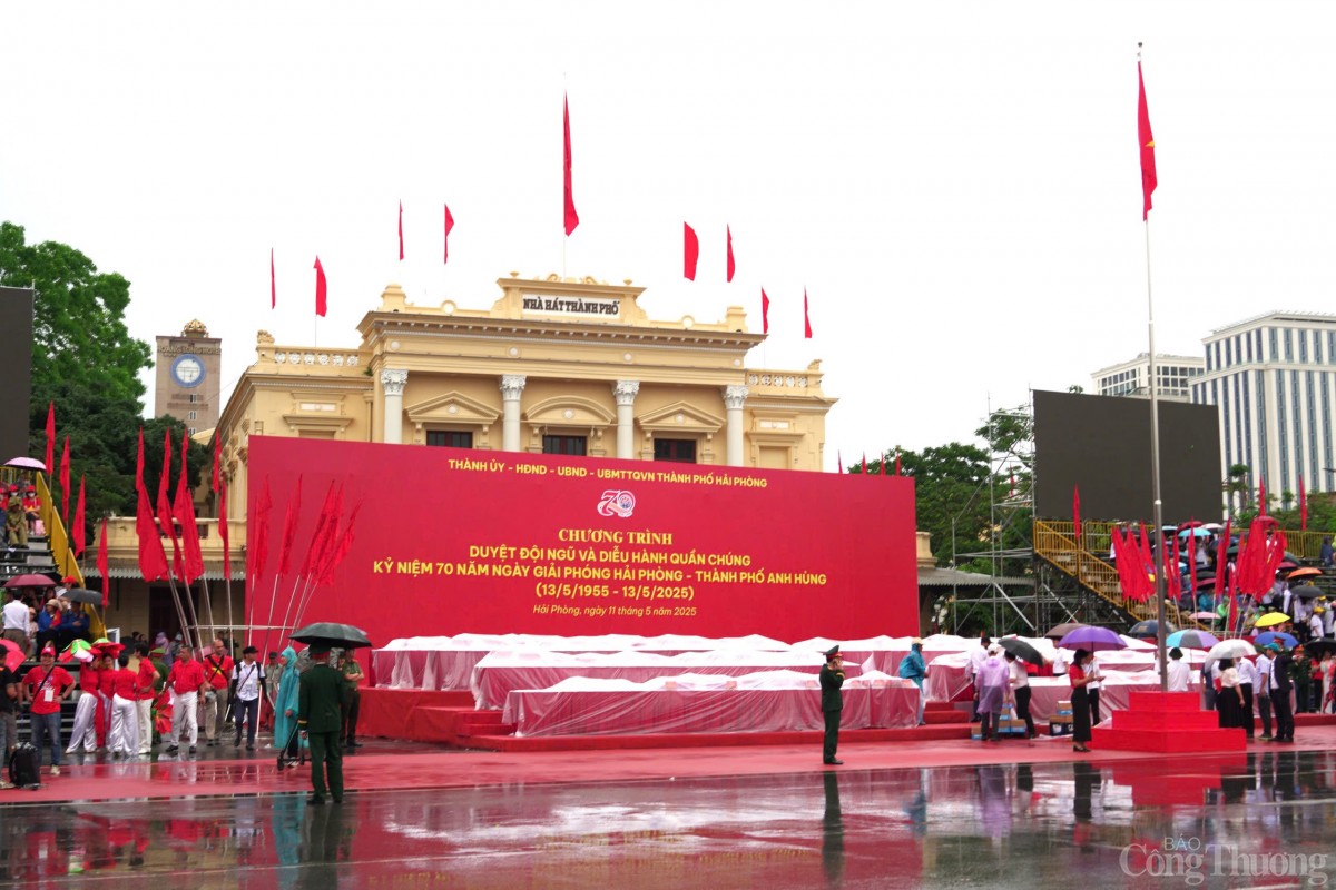 Theo ghi nhận của phóng viên Báo Công Thương, sáng nay Hải Phòng có mưa nhỏ, thời tiết mát mẻ. Chương trình duyệt đội ngũ, diễu hành mừng 70 năm Giải phóng Hải Phòng được mở màn bằng đại hợp xướng ca khúc “Thành phố Hoa Phượng Đỏ”, với sự tham gia của nhiều nghệ sĩ chuyên và không chuyên, tạo nên không khí trang nghiêm và hào hùng.