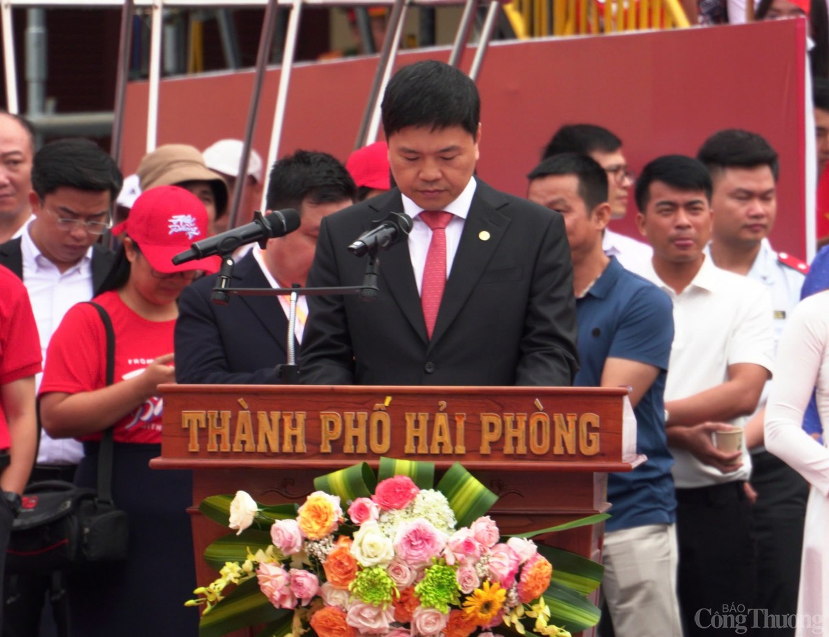 | Phát biểu khai mạc chương trình, ông Hoàng Minh Cường – Phó Chủ tịch UBND thành phố Hải Phòng - cho biết: "70 năm đã trôi qua, Hải Phòng hôm nay không chỉ là thành phố của những con tàu và ngọn sóng, mà còn là minh chứng sống động cho ý chí vươn xa, cho tình yêu quê hương cháy bỏng, đang tăng tốc phát triển, xứng đáng với truyền thống mà cha ông để lại". |