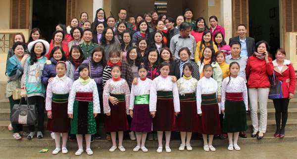 Đoàn CLB cán bộ nữ Petrolimex chụp ảnh lưu niệm cùng thầy cô giáo, các em học sinh Trường mầm non - PTCS Lũng Táo