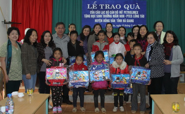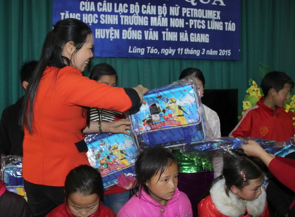 Trong chuyến thăm trường, Câu lạc bộ cán bộ nữ Petrolimex đã tặng các em học sinh 50 cặp sách, 120 bộ quần áo, tổng trị giá 20 triệu đồng từ sự đóng góp của chị em.