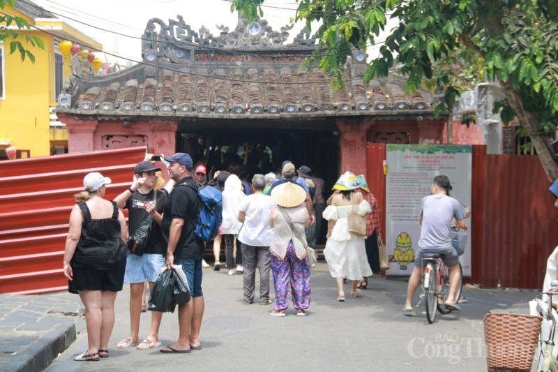 | Khu vực di tích Chùa Cầu mặc dù đang trong giai đoạn trùng tu di tích nhưng vẫn thu hút lượng lớn khách đổ về |