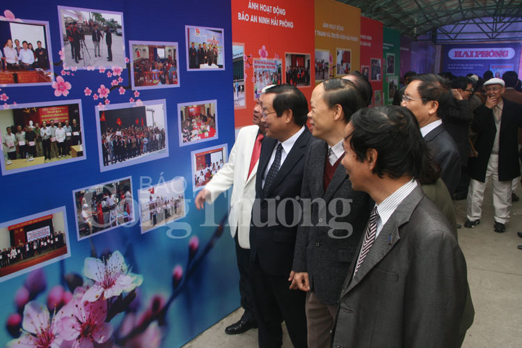 Lãnh đạo Ban Tuyên giáo Thành ủy cùng các chiến sĩ và đông đảo người dân tham quan gian trưng bày báo Xuân Đinh Dậu 2017 tại thành phố Hải Phòng |