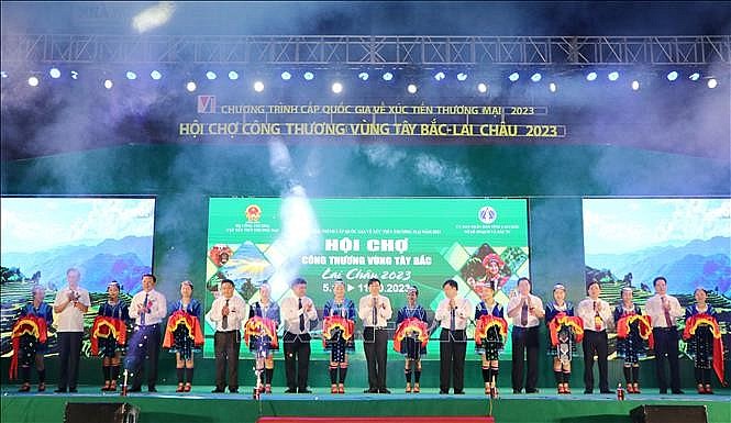Hội chợ Công Thương vùng Tây Bắc-Lai Châu 2023 khai mạc tối 6/10. Ảnh: TTXVN |