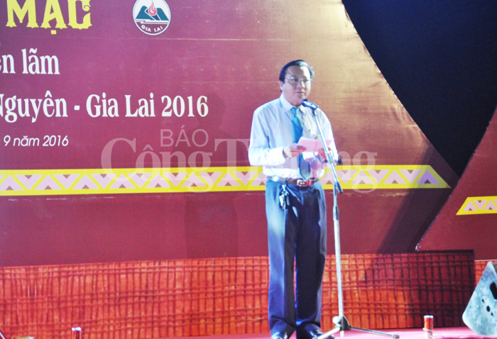 Phát biểu tại lễ khai mạc, ông Bùi Khắc Quang - Giám đốc Sở Công thương tỉnh Gia Lai -cho biết,  Hội chợ Triển lãm liên kết vùng kinh tế Tây Nguyên - Gia Lai 2016, là một hoạt động thuộc chương trình Khuyến công quốc gia, do Trung tâm Khuyến công và Xúc tiến Thương mại Gia Lai phối hợp với Công ty cổ phần Nam Việt Galaxy tổ chức