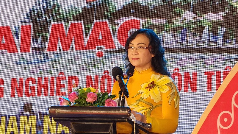 | Thứ trưởng Bộ Công Thương Phan Thị Thắng phát biểu khai mạc hội chợ |