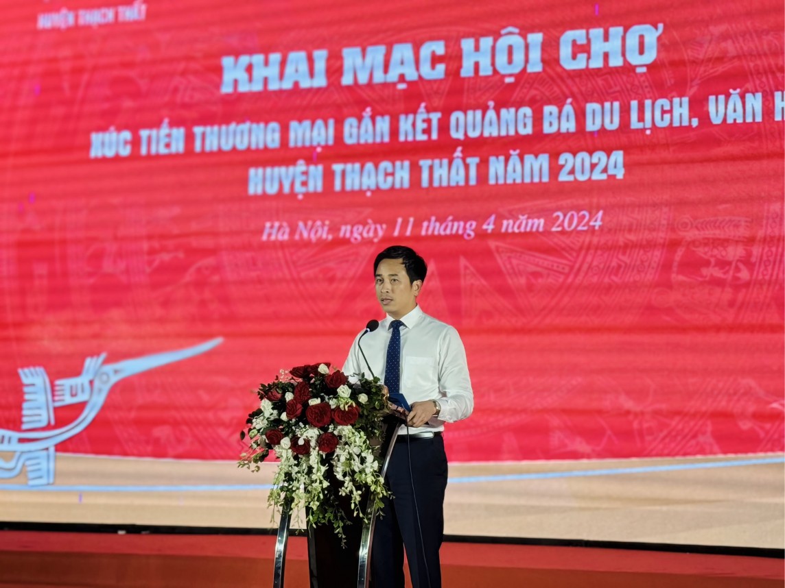 Phát biểu tại lễ khai mạc, ông Nguyễn Ánh Dương, Giám đốc Trung tâm Xúc tiến đầu tư, thương mại, du lịch Thành phố Hà Nội cho biết: Hội chợ có quy mô hơn 100 gian hàng của gần 100 đơn vị, doanh nghiệp đến từ hơn 20 tỉnh, thành phố trong cả nước và các làng nghề truyền thống trên địa bàn thành phố Hà Nội cũng như huyện Thạch Thất tham gia trưng bày, giới thiệu các sản phẩm đặc sản, nông sản thực phẩm chế biến, hàng tiêu dùng, gia dụng… cũng như quảng bá hình ảnh về văn hóa, lịch sử của địa phương.