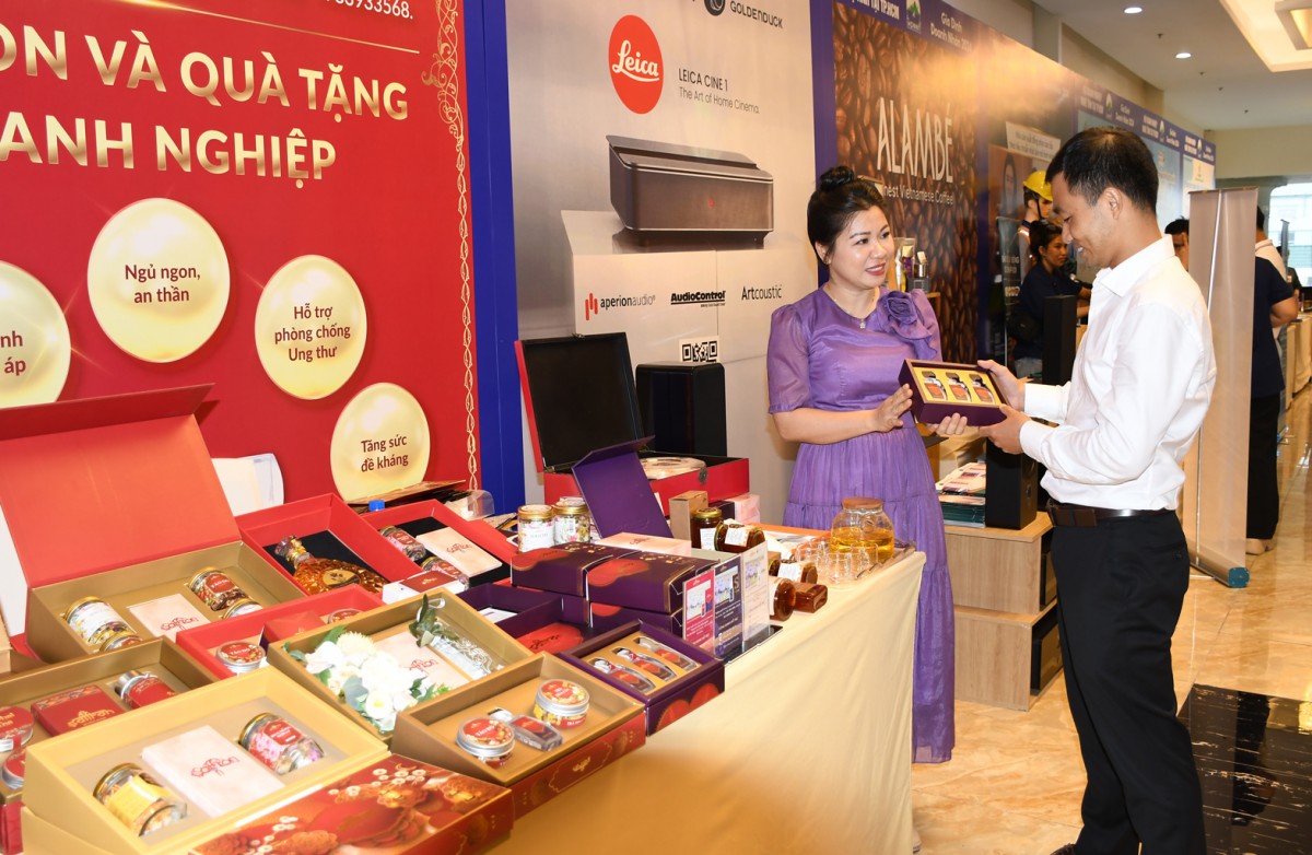| Một số sản sản phẩm được giới thiệu trong buổi gặp mặt. Ảnh: Ngân Nga |