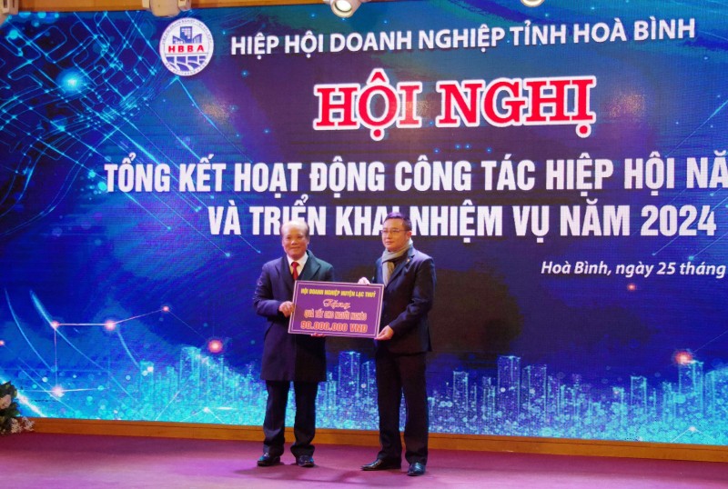 Nhân hội nghị này, cộng đồng doanh nghiệp trong tỉnh Hoà Bình đã trao tặng, ủng hộ các phần quà cho người nghèo nhân dịp Tết Nguyên đán Giáp Thìn 2024 với tổng số tiền hơn 3,378 tỷ đồng.