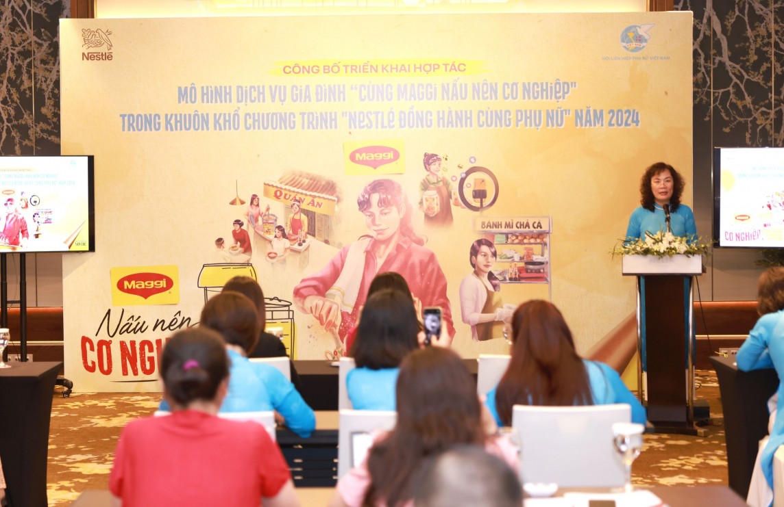 Theo đó, từ năm 2024, mô hình dịch vụ gia đình "Cùng MAGGI nấu nên cơ nghiệp" sẽ được triển khai rộng rãi ở 8/20 tỉnh trong khuôn khổ chương trình “Nestlé đồng hành cùng phụ nữ”, nhằm hướng tới đa dạng hóa cơ hội tạo lập sinh kế bền vững cho hội viên phụ nữ, góp phần nâng cao quyền năng phụ nữ và xây dựng người phụ nữ thời đại mới.