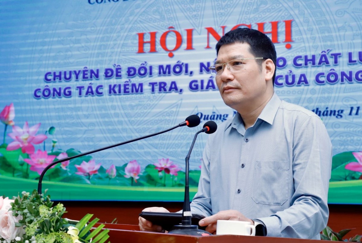 | Đ/c Lưu Thanh Hải, Trưởng ban TC-KT Công đoàn TKV trình bày báo cáo chuyên đề công tác kiểm tra, giám sát của công đoàn |