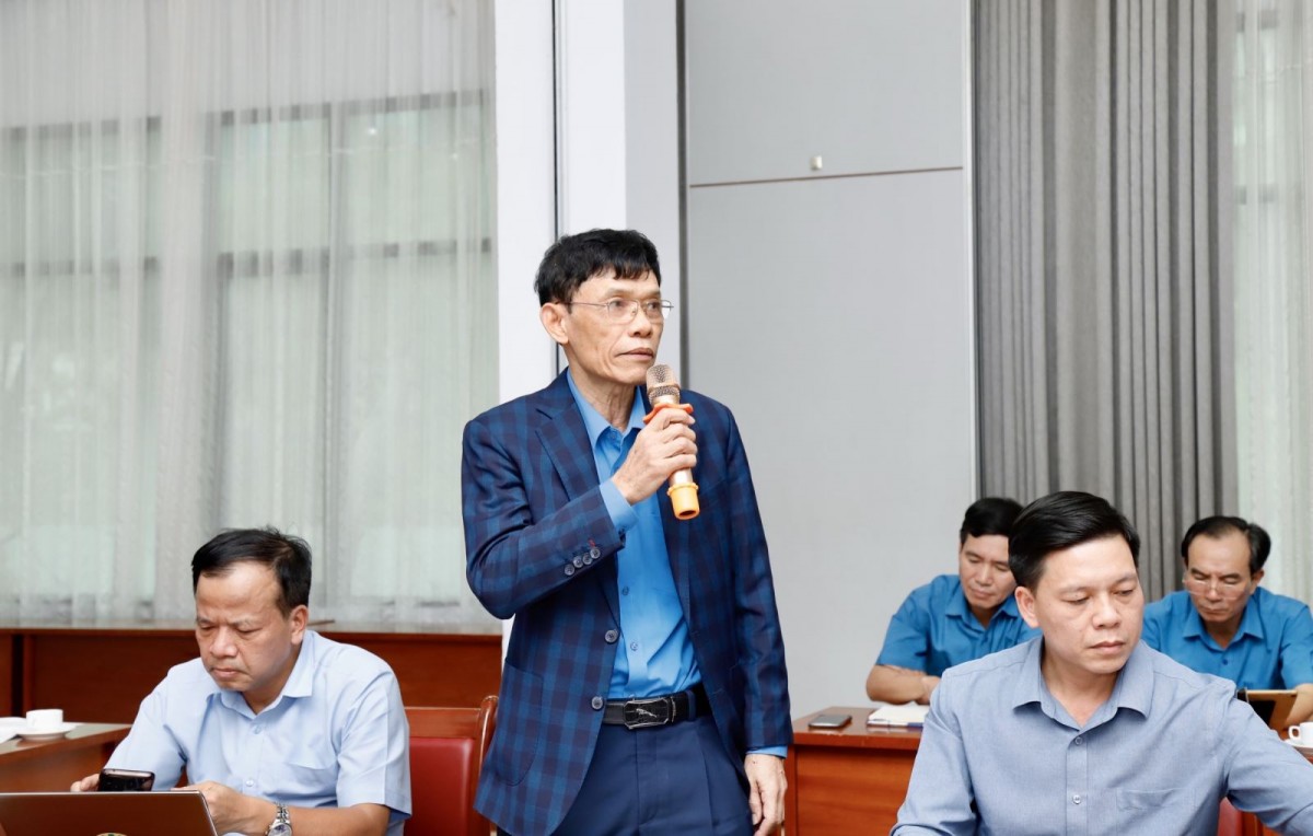 | Đ/c Nguyễn Anh Tuấn - Trưởng ban CSPL & QHLĐ báo cáo đánh giá thực trạng về nhà ở tập thể và Chương trình nhà ở Mái ấm Công đoàn |