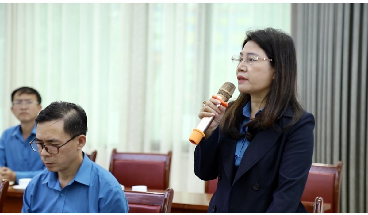 Đồng chí Nguyễn Thị Minh – Phó chủ tịch Côngđoàn TKV trao đổi các nội dung dự kiến chuyển đổi từ các Quỹ của Công đoàn TKV sang chương trình; các vấn đề về nhà ở tập thể; sử dụng tài chính công đoàn...