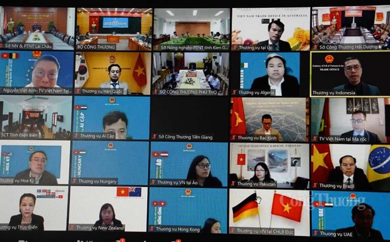 | Hội nghị giao ban xúc tiến thương mại với hệ thống Thương vụ Việt Nam ở nước ngoài tháng 2/2023 được tổ chức trực tiếp kết hợp trực tuyến |