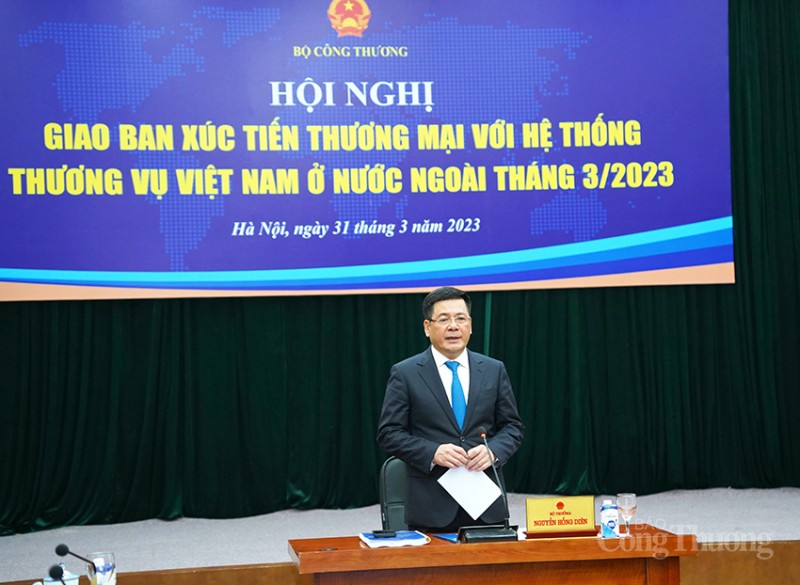 Tại Hội nghị giao ban xúc tiến thương mại với hệ thống Thương vụ Việt Nam ở nước ngoài tháng 3/2023, Bộ trưởng Bộ Công Thương Nguyễn Hồng Diên đề nghị các đại biểu tập trung thảo luận làm rõ: