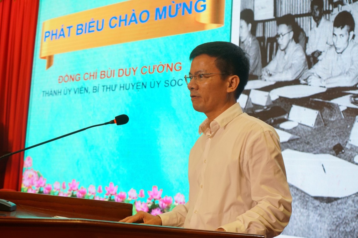 | Bí thư Huyện ủy Sóc Sơn Bùi Huy Cường phát biểu tại hội thảo. |
