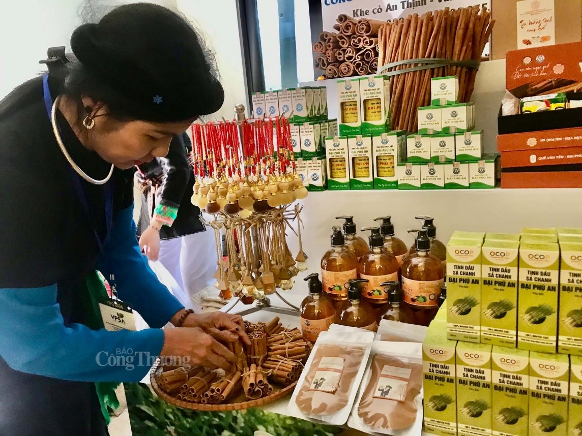 | Sản phẩm từ quế trưng bày tại hội nghị. Ảnh: Hoa Quỳnh |