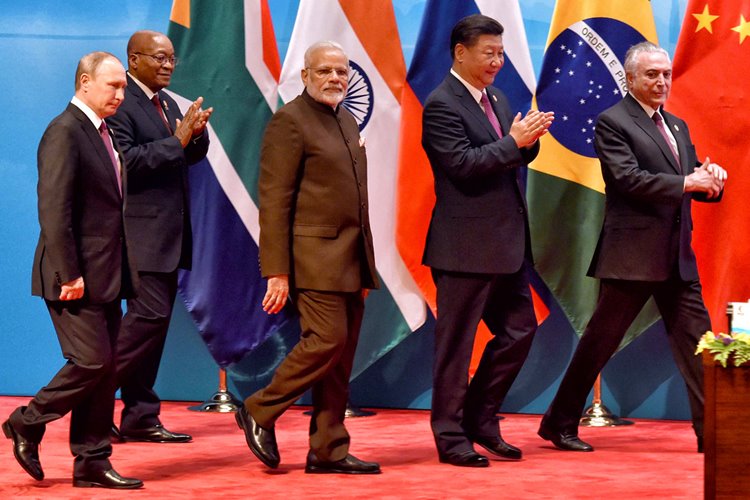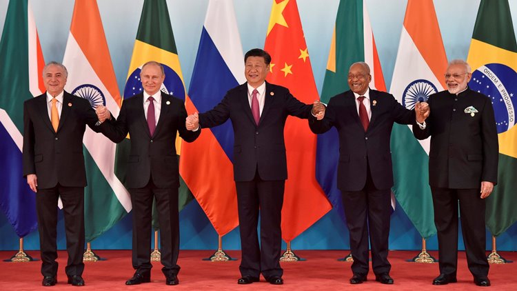 | Lãnh đạo các thành viên BRICS (từ trái qua): Tổng thống Brazil M.Temer, Tổng thống Nga V. Putin, Chủ tịch Trung Quốc Tập Cận Bình, Tổng thống Nam Phi J. Zuma và Thủ tướng Ấn Độ N. Modi. Ảnh Internet |