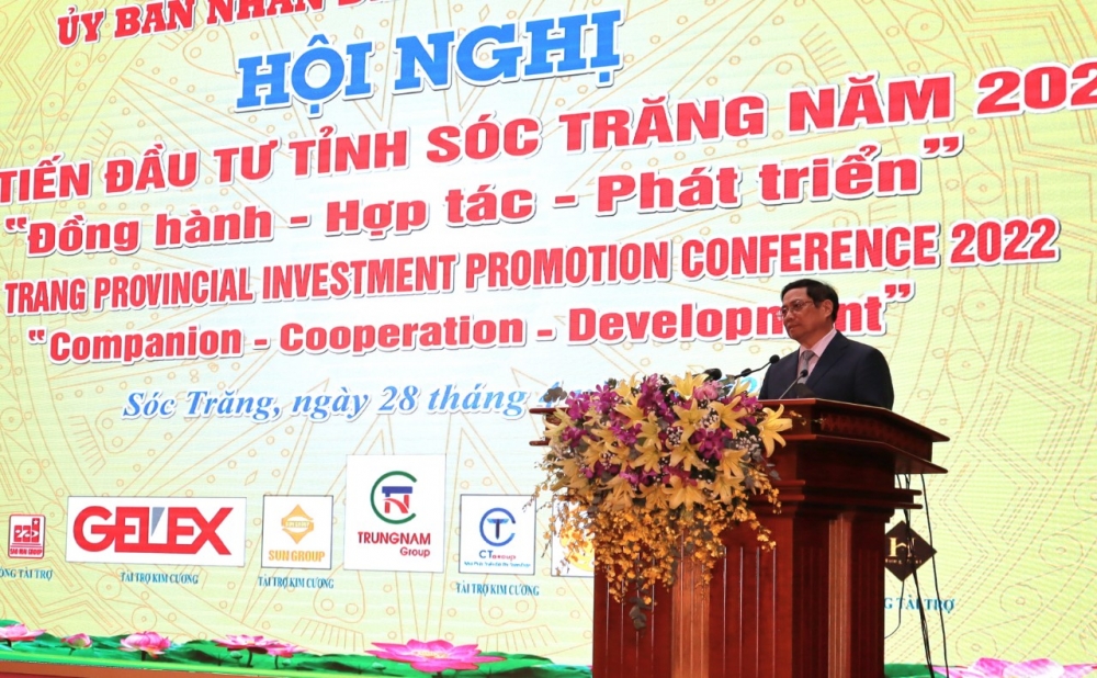 Thủ tướng Phạm Minh Chính phát biểu tại Hội nghị Xúc tiến đầu tư tỉnh Sóc Trăng năm 2022