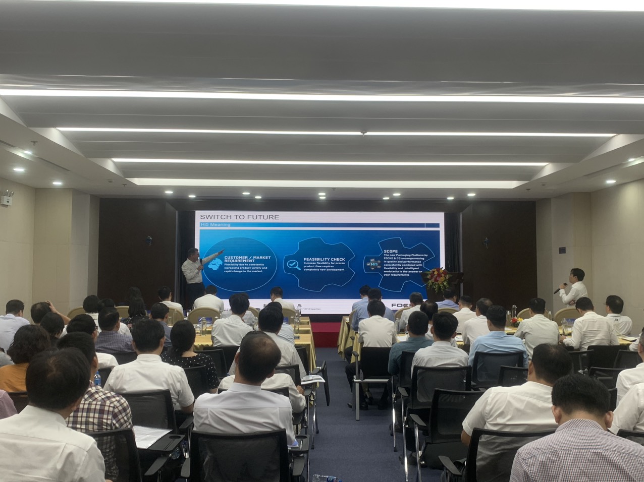 Tiếp cận nhu cầu thị trường, FOCKE đã giới thiệu tại Hội thảo dây chuyền máy đóng bao mới HI5 với công nghệ tiên tiến, thiết kế linh hoạt với ưu điểm nổi bật là chuyển đổi quy cách đóng bao nhanh chóng. HI5 cho phép nhà sản xuất dễ dàng thay đổi kích thước và thiết kế của bao thuốc chỉ trong thời gian ngắn. Quá trình chuyển đổi được thực hiện một cách linh hoạt và hiệu quả, tiết kiệm thời gian và nguồn lực, tối ưu hóa khả năng đa dạng hóa sản phẩm và giảm áp lực về chi phí chuyển đổi trong sản xuất.