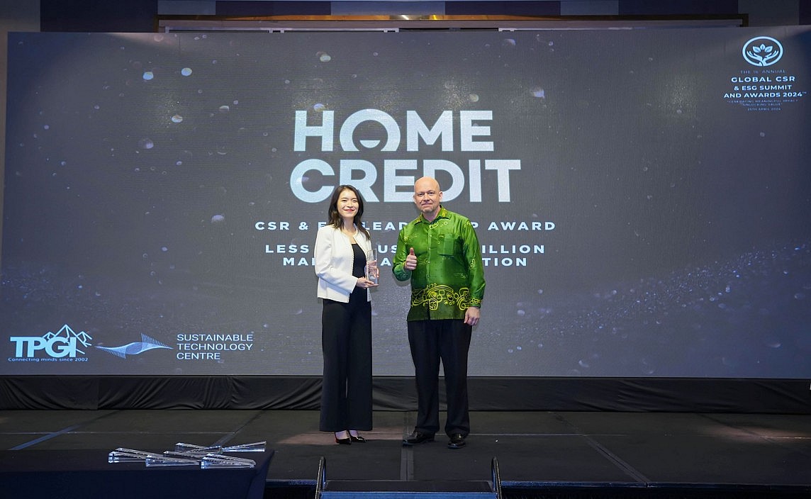 | Bà Vũ Trà My - Trưởng phòng Phát triển Bền vững của Home Credit Việt Nam đại diện công ty nhận giải thưởng CSR & ESG toàn cầu 2024 |