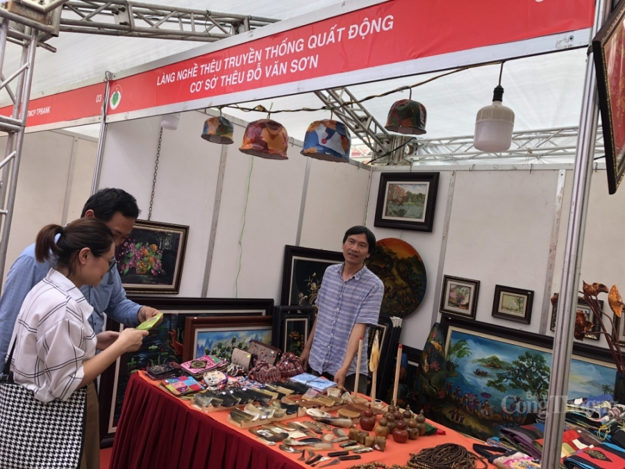 Anh Đỗ Văn Sơn - Chủ cơ sở thêu - Làng nghề thêu truyền thống Quất Động chia sẻ, gia đình anh có truyền thống làm nghề thêu tay lâu đời. Với sản phẩm thêu phong phú như tranh thêu, ga gối, khăn trải bàn, túi thêu…, sản phẩm do cơ sở anh sản xuất đã được nhiều điểm du lịch nổi tiếng trong nước đặt hàng để bán làm quà lưu niệm như Hạ Long, Hội An… Tham gia Tuần hàng Việt thành phố Hà Nội đã giúp anh tiếp cận trực tiếp với khách hàng, tìm hiểu nhu cầu và sở thích của người tiêu dùng để sản xuất ra những sản phẩm phù hợp với xu thế thị trường. Qua Tuần hàng Việt, sản phẩm thêu của cơ sở anh cũng được người tiêu dùng và các doanh nghiệp làm du lịch biết đến nhiều hơn, mở rộng được thị trường tiêu thụ.