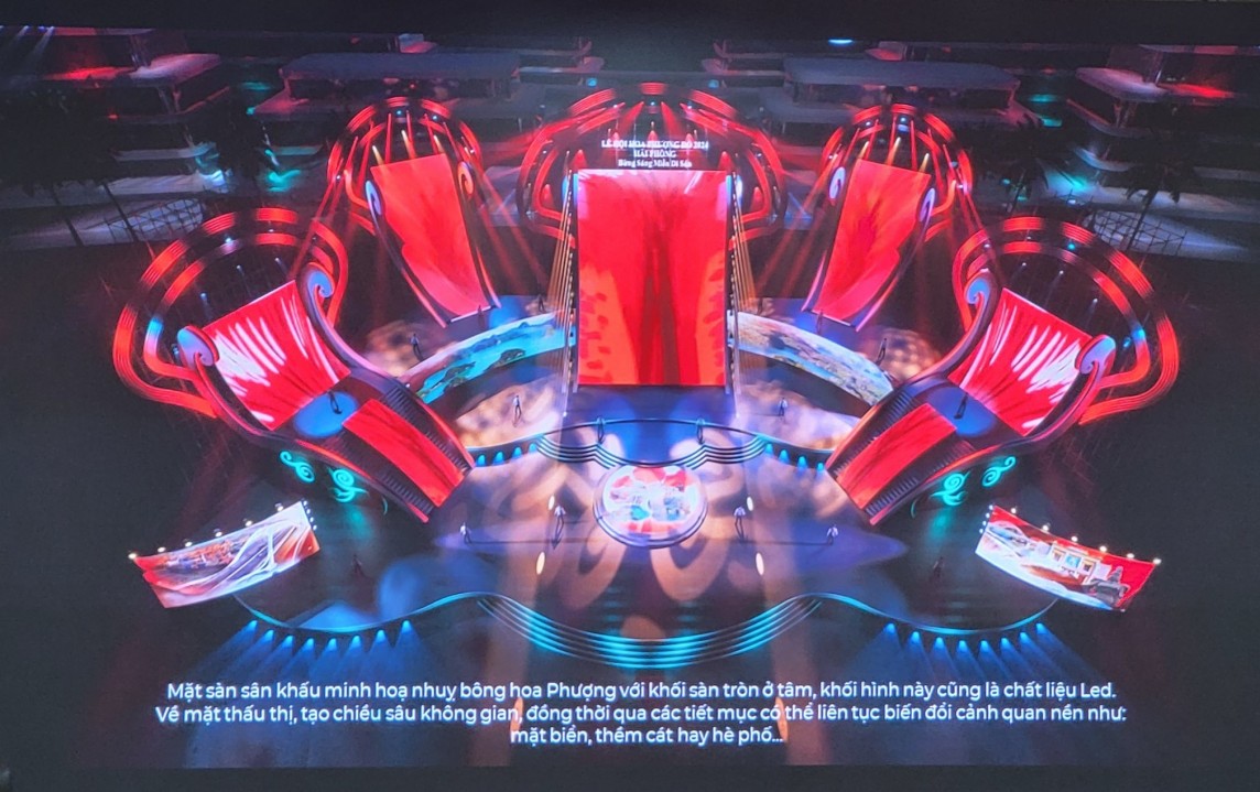 | Phối cảnh sân khấu chương trình nghệ thuật với chủ đề “Hải Phòng - Bừng sáng miền di sản”, tại Lễ hội Hoa Phượng Đỏ - Hải Phòng 2024 |