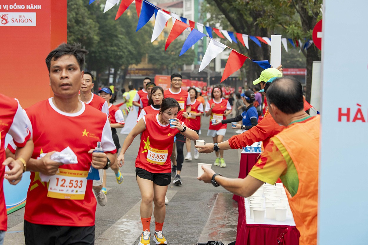 | Các vận động viên xuất phát và về đích tại đường đôi phố Đinh Tiên Hoàng, Quận Hoàn Kiếm, Hà Nội |