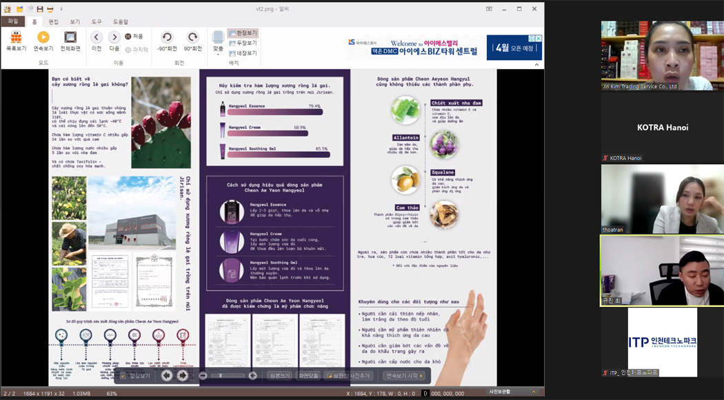 “Sau các buổi giao thương trực tuyến hoặc trực tiếp giữa doanh nghiệp Việt Nam và Hàn Quốc, chúng tôi sẽ tiếp tục hỗ trợ các doanh nghiệp với những nội dung cụ thể như: Tiếp tục truyền tải các thông tin theo yêu cầu của mỗi bên như giá sản phẩm, quy cách - chất lượng sản phẩm, quy định/chứng nhận chất lượng sản phẩm của mỗi nước; hướng dẫn soạn để đi đến thống nhất ký kết hợp đồng xuất nhập khẩu đảm bảo tính pháp lý cho mỗi bên; tư vấn quy trình/thủ tục xuất nhập khẩu có liên quan cụ thể với từng sản phẩm; kịp thời tháo gỡ các tranh chấp (nếu có)” - bà Trần Thị Hải Yến nói.