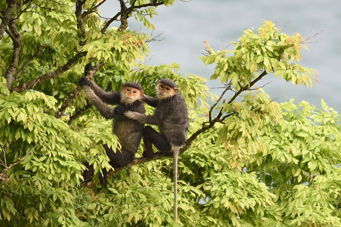 | Gia đình Voọc trên Sơn Trà. Ảnh: Bùi Văn Tuấn |