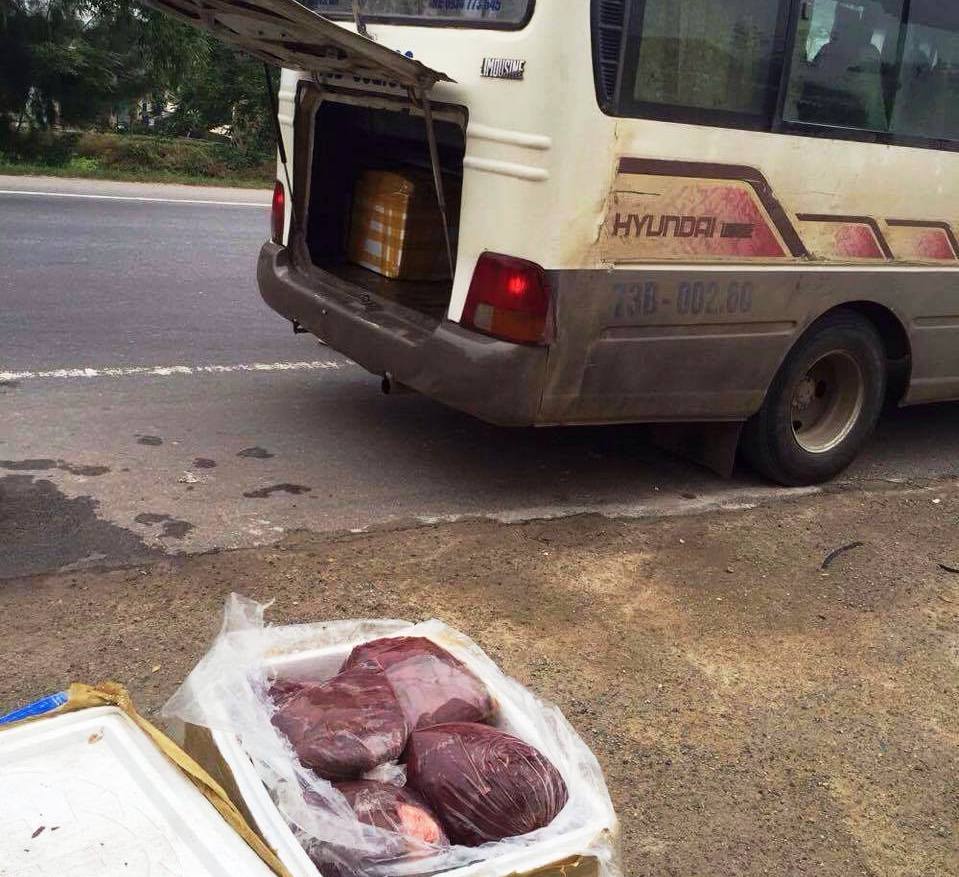 Cùng lúc, tại Quảng Bình, đội Cảnh sát Kinh tế (công an huyện Lệ Thủy) tuần tra, phát hiện tại kho nhà anh Lê Văn Thuấn (Cam Thủy, Lệ Thủy) đang bốc 3 thùng xốp lên xe khách. Qua kiểm tra, phát hiện bên trong chứa nội tạng động vật không rõ nguồn gốc xuất xứ (tổng số 1.282 kg). Được biết, số hàng trên của Trương Thị Liên (trú tại TT Kiến Giang) dự trữ để sang Lào tiêu thụ. Tổ công tác tạm giữ số nội tạng trên để xử lý theo quy định của pháp luật.