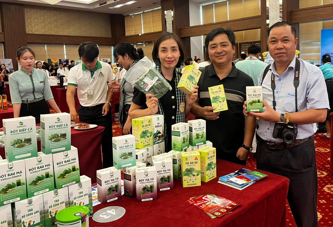 | Doanh nghiệp tỉnh Thanh Hóa giới thiệu sản phẩm bột rau má tại hội nghị |