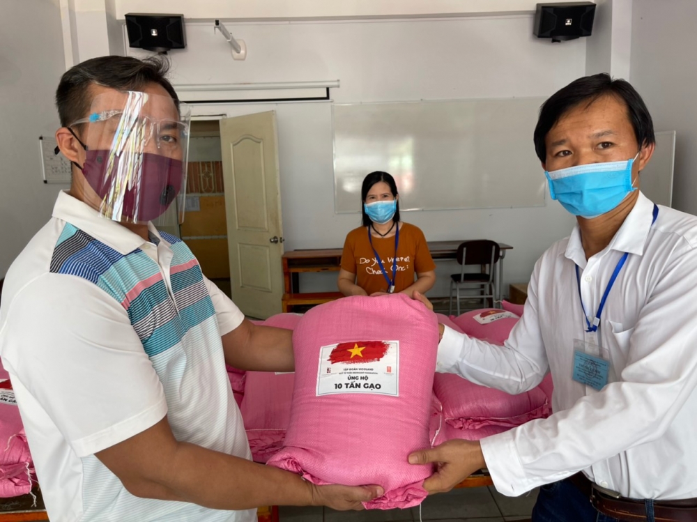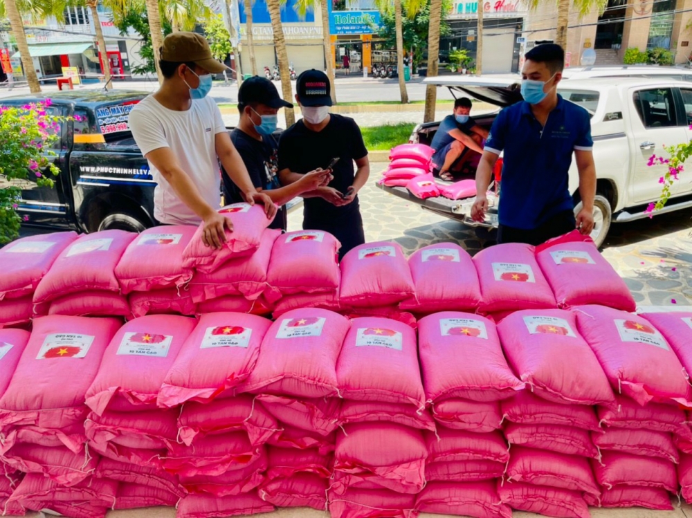 Thành viên CLB Thuận Phước Garden mang gạo của Tập đoàn Vicoland trao tặng cho bà con |