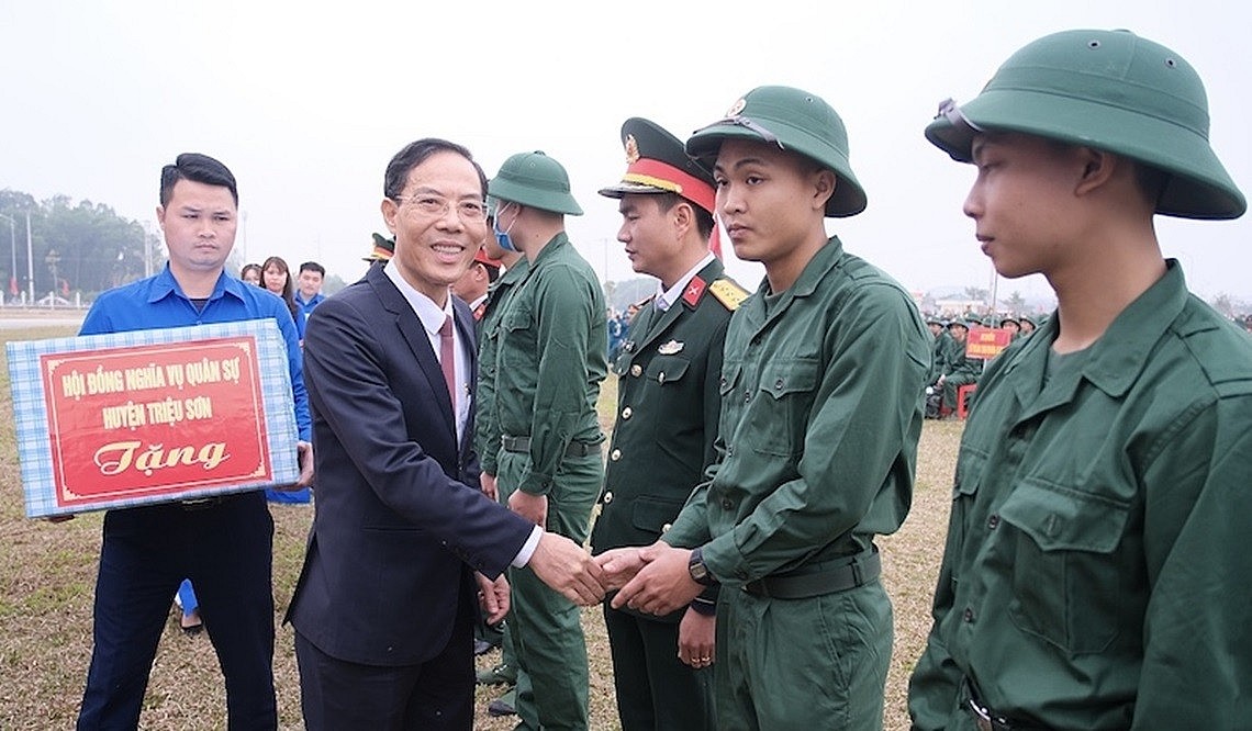 Tại huyện Triệu Sơn, năm 2025, huyện được giao 217 chỉ tiêu cho 9 đơn vị, gồm: Trung đoàn 141; Sư đoàn 312; Quân đoàn 12; Sư đoàn 361 (Quân chủng PKKQ); Lữ đoàn 206 (Quân khu 4); Sư đoàn 324 (Quân khu 4); Đoàn Nghi lễ Bộ Tổng tham mưu; khối Bộ Chỉ huy quân sự, Bộ Chỉ huy Bộ đội Biên phòng tỉnh và khối nghĩa vụ Công an tỉnh Thanh Hóa. Các tân binh đều đáp ứng yêu cầu về phẩm chất chính trị, sức khỏe và trình độ học vấn.