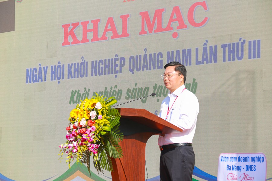 Phát biểu khai mạc, ông Lê Trí Thanh - Chủ tịch UBND tỉnh Quảng Nam cho biết, thời gian qua phong trào khởi nghiệp trên địa bàn tỉnh được cộng đồng doanh nghiệp phát huy mạnh mẽ và trải đều trên các địa phương, cộng đồng doanh nghiệp, thanh niên khởi nghiệp Quảng Nam đã cùng chia sẻ kinh nghiệm để phát triển các sản phẩm đưa vào sản xuất, kinh doanh mang lại dấu ấn, góp phần tạo kinh tế cho xã hội.