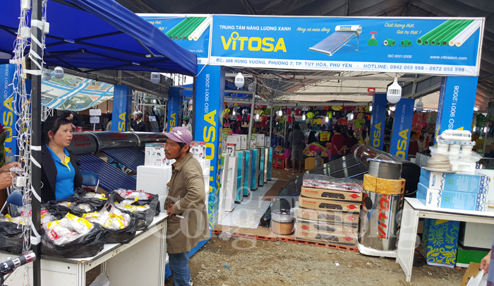 Ông Huỳnh Bá Đạt - Giám đốc Công ty Trung Việt, đơn vị tổ chức hội chợ cho biết, Hội chợ Xuân Phú Yên thu hút hơn 450 gian hàng của 150 doanh nghiệp trong cả nước. Nhiều nhất là các DN đến từ Bến Tre, Bình Định, Đồng Nai, Đồng Tháp, Long An, Gia Lai, Hà Nội, Hải Phòng, TP. HCM, Vĩnh Phúc, TT Huế, Hưng Yên, Lâm Đồng, Khánh Hòa, Quảng Nam, Tây Ninh… Riêng DN địa phương Phú Yên tham gia với trên 50 gian hàng. Trong đó có nhiều thương hiệu nổi tiếng như Công ty trà Tâm Lan Tây Ninh, siêu thị Coopmart, Trung tâm máy lọc nước Phú Yên, Công ty An Hưng Phát, Công ty Vitosa Việt Nam, Gỗ mỹ nghệ Vinh, nội thất Minh Lâm.