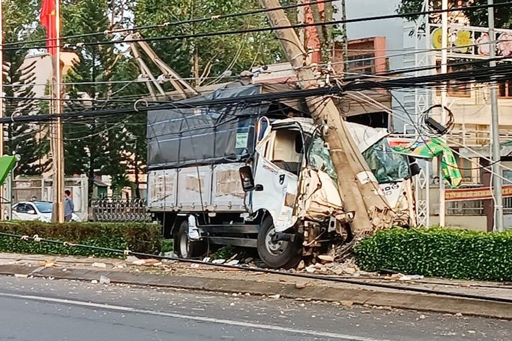 Khoảng 3h25 ngày 19/5, xe tải chở hàng chạy trên quốc lộ 20, hướng Đồng Nai đi Lâm Đồng. Sau cú va chạm với ô tô 7 chỗ trên quốc lộ 20, đoạn qua huyện Tân Phú (Đồng Nai), xe tải mất lái lao lên vỉa hè tông gãy hai trụ điện trung thế. Tai nạn khiến xe tải bể nát, ôtô 7 chỗ hư hỏng nặng lật ngang trên đường. Nam tài xế bị thương, được người dân đến hỗ trợ đưa đi bệnh viện cấp cứu.