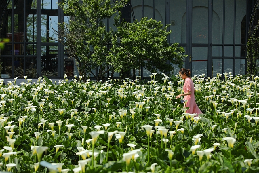 | Hoa leo kín rào, tạo thành những “bức tường hoa” rực rỡ. Du khách cứ mê mẩn hít hà, chụp ảnh với hoa chẳng muốn rời |