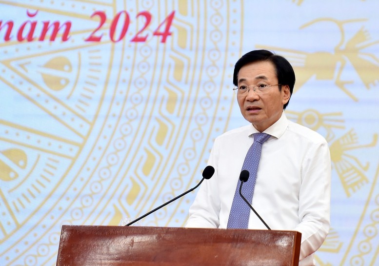 Mở đầu họp báo, Bộ trưởng, Chủ nhiệm VPCP Trần Văn Sơn thông tin về nội dung Hội nghị Chính phủ với các địa phương tháng 9/2024 diễn ra sáng nay, dưới sự chủ trì của Thủ tướng Chính phủ Phạm Minh Chính bàn về tình hình kinh tế - xã hội 9 tháng và nhiệm vụ, giải pháp trọng tâm tháng 10, quý IV năm 2024 và thời gian tới.