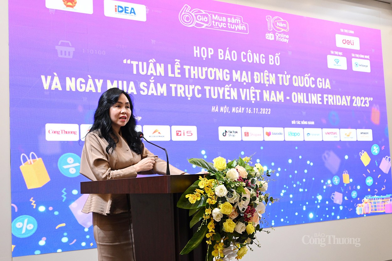 Phát biểu khai mạc họp báo, bà Lê Hoàng Oanh, Cục trưởng Cục Thương mại điện tử và Kinh tế số nhấn mạnh, Ngày mua sắm trực tuyến - Online Friday là chương trình quốc gia, có quy mô lớn, mang lại cho doanh nghiệp, người tiêu dùng cơ hội quảng bá thương hiệu và bán hàng hiệu quả.