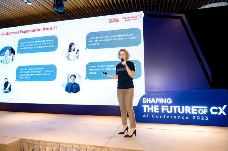 | Bà Anastasia Fokina – Giám đốc Vận hành và Chuyển đổi số Home Credit Việt Nam chia sẻ những trải nghiệm của khách hàng tại buổi hội thảo về công nghệ AI |