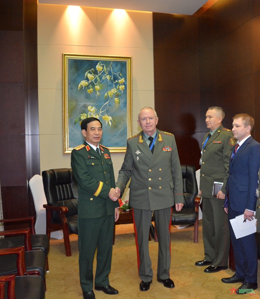 Đại tướng Phan Văn Giang cũng đã có cuộc gặp song phương với Thượng tướng Alexander Fomin, Thứ trưởng Bộ Quốc phòng Nga. Hai bên bày tỏ vui mừng chứng kiến quan hệ hợp tác quốc phòng song phương tiếp tục đạt nhiều kết quả quan trọng trong năm 2024. Nổi bật là duy trì tốt trao đổi đoàn các cấp; triển khai hiệu quả hợp tác trên các lĩnh vực: Đào tạo, huấn luyện, quân y, hợp tác quân - binh chủng, truyền thông và thông tấn quân sự, lịch sử quân sự, pháp luật quân sự; duy trì phối hợp, tham vấn hiệu quả tại các cơ chế, diễn đàn đa phương quốc tế về quốc phòng, nhất là ADMM+.