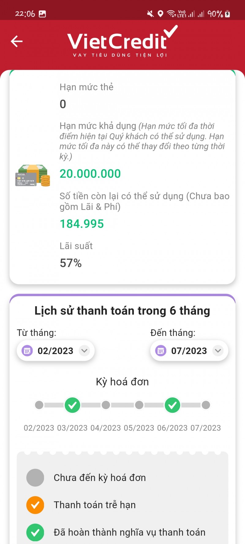 | Ảnh chụp màn hình ứng dụng Vietcredit cho ông Trí vay - Ảnh Bạn đọc cung cấp |