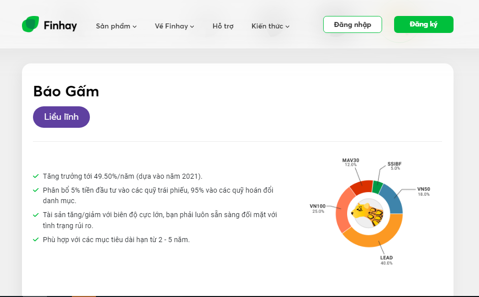 Finhay đưa ra sản phẩm cho khách hàng lựa chọn với mức tăng tưởng lên đến 49.5%